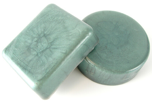 FOUR: Time to make our base soaps. Melt 35 oz clear soap base and mix in 1-2 tablespoons of Patina Sheen Mica and 1 oz of Pumpkin Spice Fragrance Oil. Fill up all four cavities of the Heavy Duty Round Mold and Slim Short Rectangle Mold (or any mold that you want to spice up with a spooky glare). Let cool.