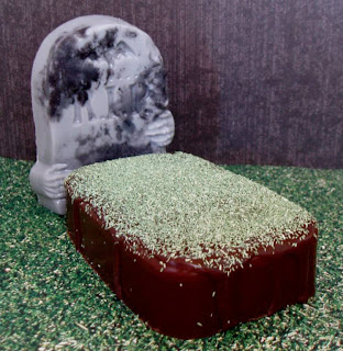 To complete the set from Monday’s post, here is how to make a cool headstone with the same mold used for the Crypt Soap. This is a really fun way to add some technique to a soap but without needing any artistic ability. If you can dab, you will have great results. Try it with the kiddos!