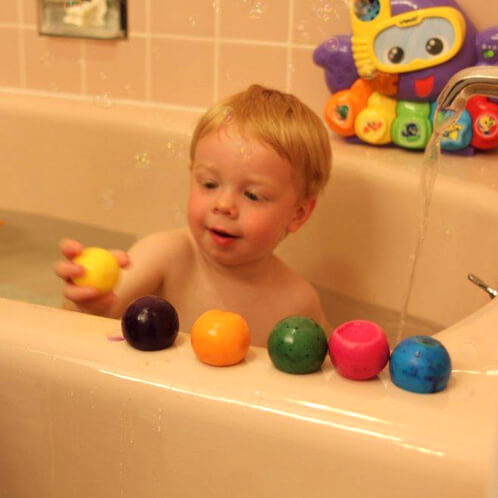 SIX:Â Test the soap crayons in a discrete area on your tub before unleashing your child’s creativity. Rinse away with a washcloth and warm water.