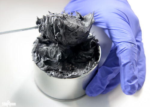SIX: Repeat step three in the second container. When the wax starts to solidify, add 1 mL of the Cedarwood Essential Oil and 1 tablespoon of the dispersed black oxide. Scrape the sides of the bowl and whip until the mixture is solid but spreadable. Spoon the mixture into a candle tin and smooth with the back of a spoon.