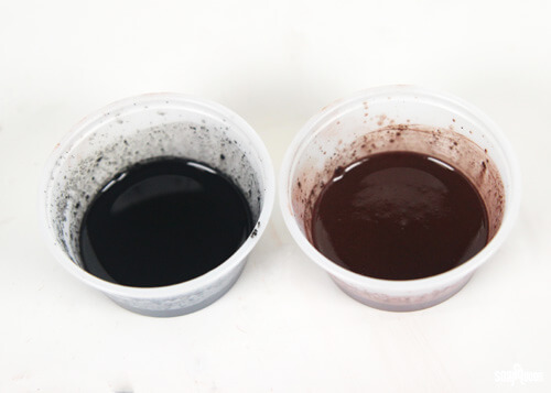 COLOR PREP: Disperse 1 teaspoon of each colorant into 1 tablespoon of hazelnut oil. Use a mini mixer to get the clumps of color worked out smoothly.