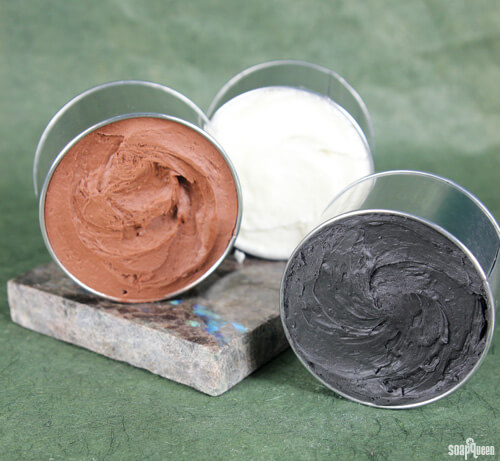 SEVEN: Repeat step three in the third container. When the wax starts to solidify, add 1 mL of the Cedarwood Essential Oil and 1 tablespoon of the dispersed brown oxide. Scrape the sides of the bowl and whip until the mixture is solid bit spreadable. Spoon the mixture into a candle tin and smooth with the back of a spoon.