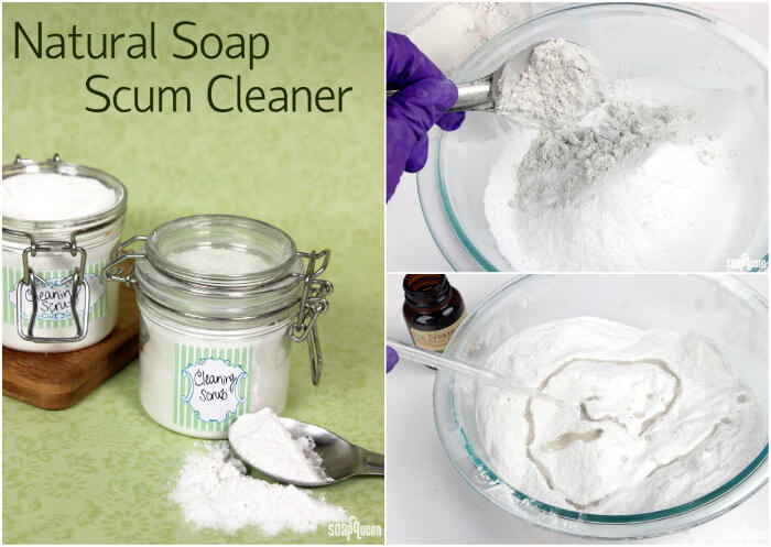 If you’re looking for something a little “tougher,” the Natural Soap Scum Cleaner is perfect for built up scum in the bathroom or kitchen. In particular, it works great for cleaning soap scum in the shower. It’s made from scrubby ingredients including baking soda, pumice and Epsom salt. Before using the scrub, test it on a hidden area in your shower or sink to see if it scratches the surface. The scrub may be a bit too harsh for certain finishes. When you’re ready to use, place the dry scrub directly to a damp shower or sink surface, and use a sponge to scrub away grime.