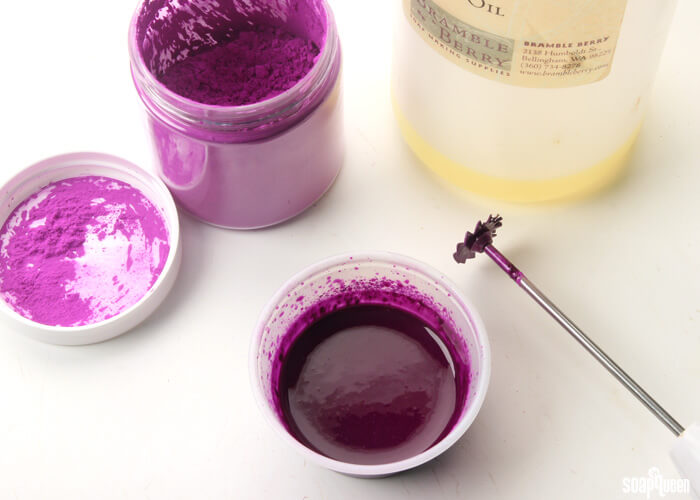 - In a small container, mix together the argan oil and Radiant Plum Colorant. Use a mini mixer if necessary to remove any clumps.