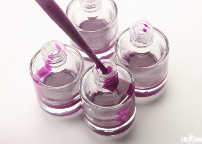 For this recipe, I use argan oil, but any lightweight liquid oil would work. Sweet almond oil, chia seed oil, green tea seed oil, avocado oil or hazelnut oil would all be great choices. While slightly more oil could be added to the mixture, adding too much can prevent the polish from drying. If you’d like to add more oil, make a small test batch first to make sure the polish dries and hardens. This technique also works with other colors. The Radiant Plum Colorant used in this tutorial gives a gorgeous vibrant purple hue.