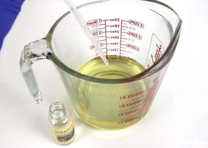 TWO: Add the 2 mL of vitamin E oil. Place the container in the microwave for about 30 seconds, or until the oils have warmed slightly. Add the oat extract.
