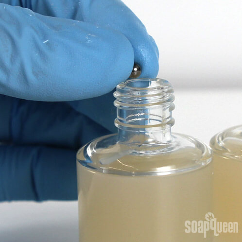 TWO: Drop a mixing ball into each nail polish bottle.