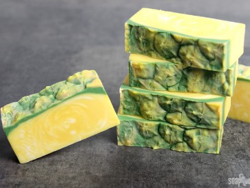 For a sweet fruity scent, I used Pineapple Cilantro Fragrance Oil. The cilantro notes give just a hint of green, which gives the fragrance a well-rounded scent. It also behaves wonderfully in cold process soap, which allows you to create an “in-the-pot-swirl.” If you’d like to see this technique in action, check out this episode of Soap Queen TV.