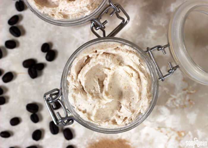 If you want the scrub to be a bit more fluffy, I would recommend whipping the butters! You can see how to do that in the Whipped Champagne Shea Butter Tutorial: https://soapqueen.com/bath-and-body-tutorials/12-days-christmas-whipped-champagne-shea-butter/