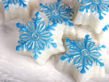 The thought of fresh snow led me to create these super sparkly snowflake melt and pour soaps. They would make a great holiday gift. It’s also a fun project to do with family and friends who are staying during the holidays. If it doesn’t snow, I’ll probably whip up another batch with my mom to make our own white Christmas! =)
