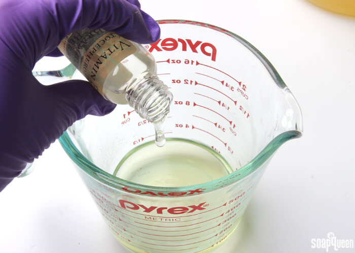 • In a small heatsafe container, add the coconut oil and avocado oil. If your coconut oil is solid, melt before adding to the container. Then, add the vitamin E oil and stir to combine.
