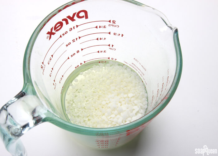 • Add the white beeswax and cera bellina wax into the container, and heat the container in the microwave using 30 second bursts until the waxes have completely melted. Be careful when removing the container from the microwave, as it may be very hot.