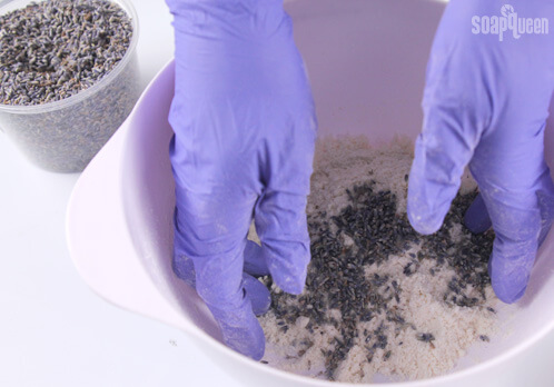THREE: Add the colloidal oatmeal and lavender buds.