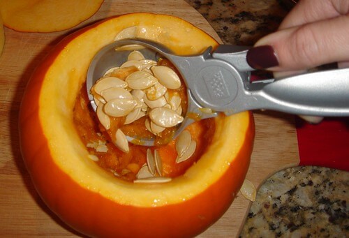 I hate to waste anything. I loathe throwing out anything that might have a dual purpose. And, while I know you can toast the Pumpkin Seeds, it seems criminal to eat something that is so good for your skin. Pumpkin Seed Oil is made from pressing pumpkin seeds. It is rumored to help with fine lines and help keep skin supple and moist.