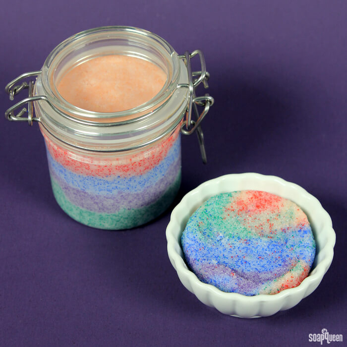 Jojoba beads are perfect for scrubs. Along with adding gentle exfoliation to your recipe, they also add a gorgeous color. The Fresh Rain Sugar Scrub gets its blue hue from Ocean Blue Jojoba Beads. Using different colors and layering them creates a fun rainbow effect in this Rainbow Jojoba Bead Sugar Scrub.
