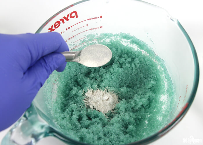 You can use micas to color your scrub! There are lots of colors to choose from, and they give the scrub great shimmer. You can add those to the salt, like we did in this tutorial. How much you add will depend on how much color you want to transfer to your skin! I would recommend starting off with 2 teaspoons and adding more from there if you like. 🙂
