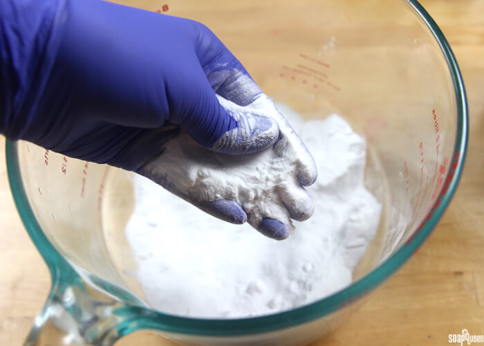 - In a large container, add the baking soda. Use your hands to break up any clumps.