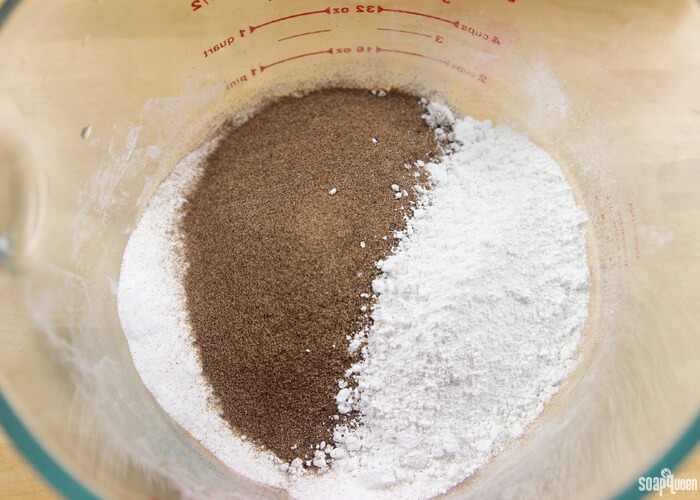 TWO: Add the walnut shells and kaolin clay.