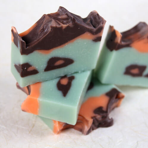 You really have to let your soap get to a heavier trace to get this ‘gloopy’ look. If you haven’t done a recipe where you got it to a super high trace, I would definitely suggest doing a couple small test batches and experimenting so you know what it looks like! We can’t wait for you to try this tutorial out and see how your leopard spot tutorial soap turns out. 🙂