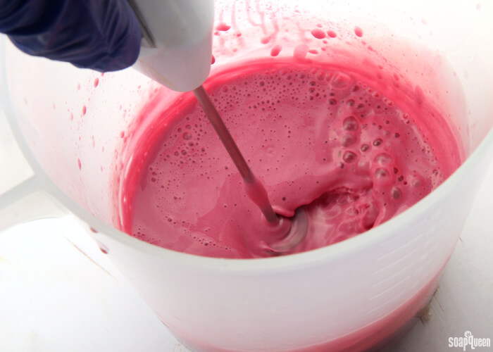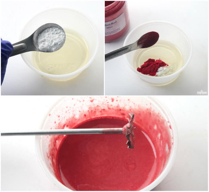 THREE: Add the color mixture to the oil and wax mixture and mix well.