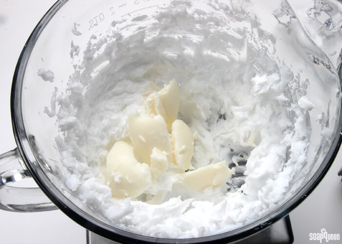 - Add the shea butter and shea oil, and use the mixer to whip until the mixture is completely blended.