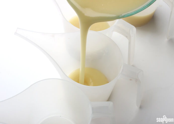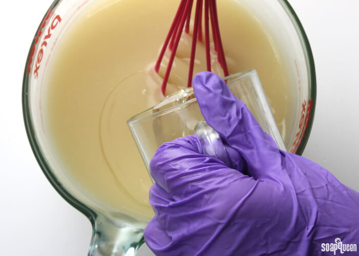 - Slowly and carefully add the lye to the water and gently stir until the lye has fully dissolved and the liquid is clear. Set aside to cool.