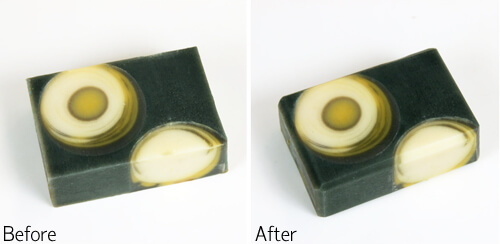 While the beveller does not drastically change the soap like steaming or washing, the before and after examples below show how a subtle change can make a huge difference!