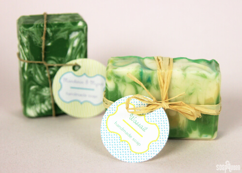 Adding a sleek and polished label not only tells recipients about the soap, a label instantly makes a bar look professional and gift-worthy. Labels can come in the form of cigar bands or hanging tags. Bramble Berry has numerous downloadable templates to make adding labels to a wide array of products extremely simple. If you’re looking for information on how to label ingredients for cold process soap, this post has you covered.