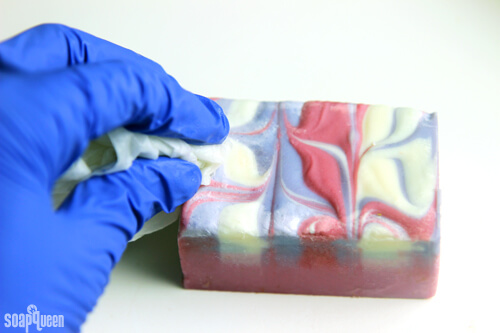 Yes, you heard that right…you can wash your soap! This is a great alternative to steaming if you do not have a steamer available. Wrap a nylon around your finger, and run your finger under cold water. Gently scrub away the soda ash using the nylon and water. You can also run a paper towel under cold water, and use the paper towel to gently “wash” away the soda ash.
