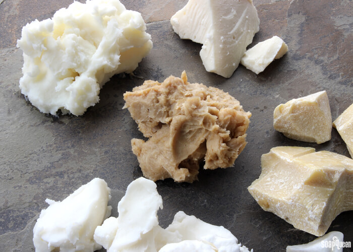 For soap, I use Shea butter almost exclusively. My standard recipe is 35% olive oil, 35% coconut oil, and 30% Shea butter. Everyone goes crazy over this soap. Expensive, yes. But I don’t sell, I give to friends and family as gifts.