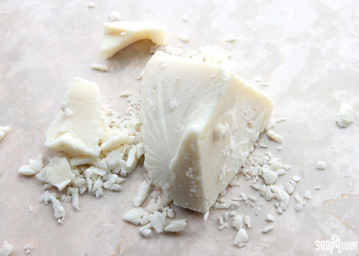 Before we look at the different kinds of butters, let’s talk about what butters have in common. Butters come from various natural sources, such as fruit trees and kernels. Some butters, such as coffee butter, are a blend of hydrogenated oils. Hydrogenation is the process of adding hydrogen to liquid oils to turn them into a solid. In general, butters are extremely skin loving and add a luxurious feel to products. In cold process soap, butters can contribute to the firmness of the bar. But, using too much butter can inhibit lather, or cause the soap to crack. In general, I like to use butters around 10%-15% or less in my recipes. To read more about various soap making oils and butters, click here.