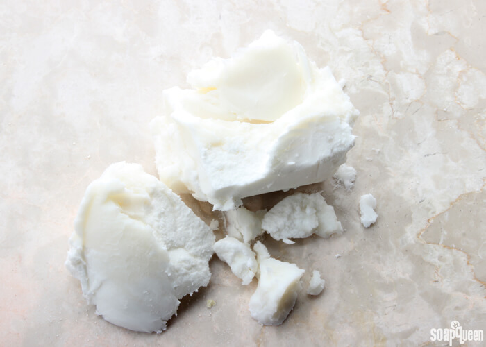 This skin-loving butter is usually used at 15% or less of the total oils in your cold process recipes. It contributes a bit to bar hardness and conditioning properties but does not help with lather. The soft texture makes it great for creating whipped body butters, as shown in the Easy Whipped Shea Butter. It’s also fantastic in lotion and lotion bars. Check out the tutorials below for projects using shea butter.