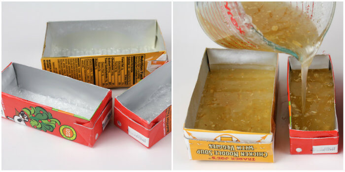 Just about any container can be turned into a soap mold with proper lining. If the container is plastic, the soap can be poured directly without lining. Popular options include yogurt containers, pudding cups and tofu containers. Cardboard milk containers are also a good option, as the inside is normally lined with a nonstick coating. Check out the How to Recycle Your Recyclables post for more ideas. Recycling objects and boxes in your home is a great way to save money on molds and create eco-friendly and unique looking bars.