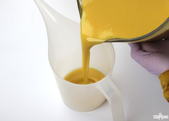 Now that you have safely mixed your lye solution, it’s time to make cold process soap. But safety doesn’t stop here! During the entire soap making process, it’s important to wear your safety gear which includes goggles, long sleeves and pants, and gloves. This is because the lye solution still has the potential to irritate the skin once mixed with soaping oils.