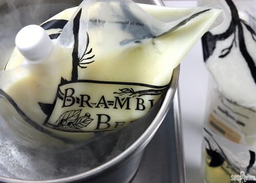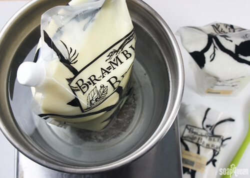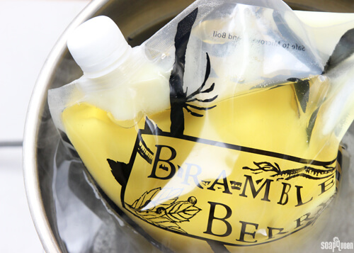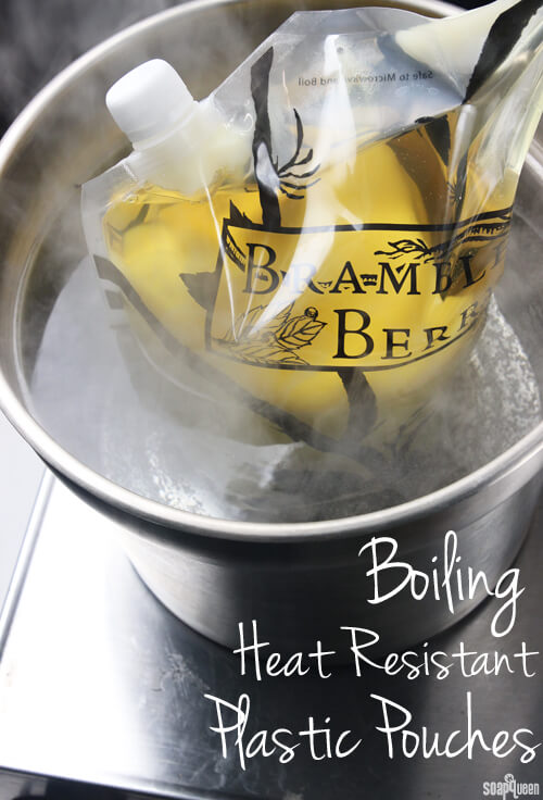 Common soap making oils that require melting before use are coconut oil and palm oil. Packaged in Heat Resistant Plastic Pouches, these bags come in a large size that holds seven pounds and a small size that holds one pound. Many soapers place the bags into the microwave to melt the oils inside. This process is easy! First, make sure the cap of the bag is secure. Place the entire bag into the microwave and heat using one minute bursts until the entire container is melted. Be careful when removing the bag, as it may be hot. Then, pour the amount of oil that you need. The quality of the oils are not affected by the heat, so don’t worry if you need to melt down the oils several times. If you don’t have a microwave, you can also boil these pouches! While easy to do, there are a few things to keep in mind while boiling the Heat Resistant Pouches.