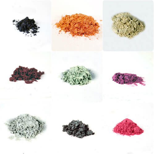 Second Row:Â Perfect Orange, Merlot Sparkle, Titanium Dioxide, Ultramarine Blue, Ultramarine Pink