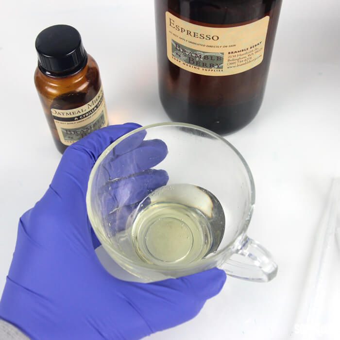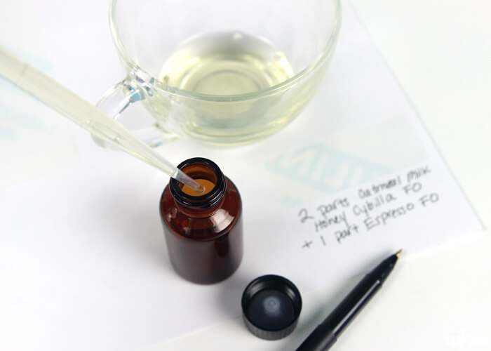 Once you have smelled the blend with equal parts of each fragrance, add more fragrance (one “part” at a time) as you see fit. Keep smelling after each addition to find just the right amounts. Once you are happy with your blend, transfer the blend to a small container and label. This way you can easily re-smell the fragrance and recreate it in larger projects. Or, use the small amount of oil to make a test batch to see how the blend does in your product of choice.