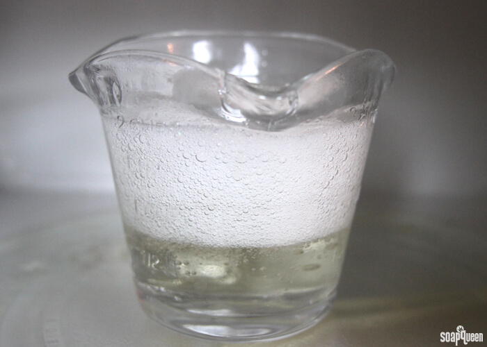 If melting large amounts of melt and pour (multiple pounds), a double boiler may be your best option. In the Soap Lab, we use industrial size warmers for melting large amounts of soap. When melting smaller amounts of soap, be extremely careful. Melting less than 5Â ounces of soap is tricky; it’s very easy to burn small amounts of melt and pour soap. If you are melting less than 5Â ounces in the microwave, use 5-7 second bursts and stir in between each burst. Melting closer to 1-2 ounces? Use 3-5 second bursts. Remember, it’s always easier to microwave the soap for longer!