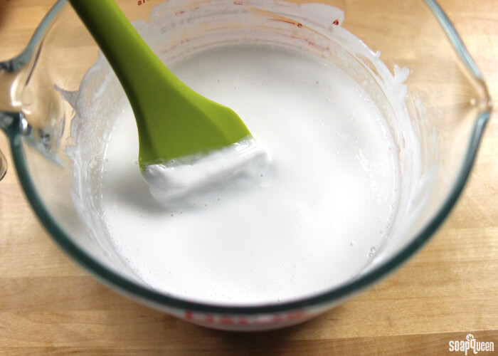 The key to melt and pour that’s fluid but not burned is patience. It’s so tempting to stick a container of melt and pour in the microwave for a minute or two and walk away…but don’t do it! Melt and pour requires short bursts in the microwave with stirring in between. Your patience will be rewarded with melt and pour that is thoroughly melted, and easy to work with.