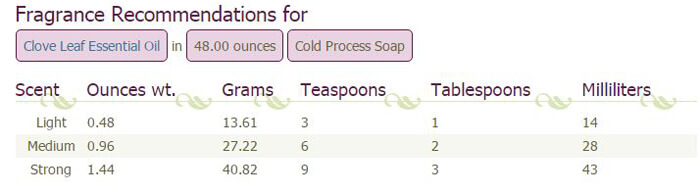 Clove Leaf Essential Oil Usage Rate for 48 ounces Cold Process Soap: