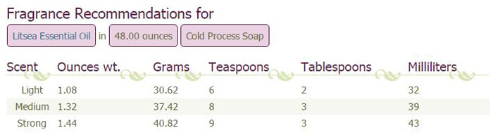 Litsea Essential Oil Usage Rate for 48 ounces Cold Process Soap: