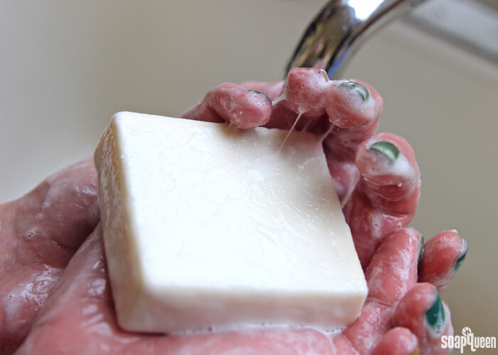 The bars can definitely be a bit soft and slimy! If you get another request, Elaine has some great tips. Hot processing or water discounting the soap can make it more firm and take away some of the slimy feeling. 🙂