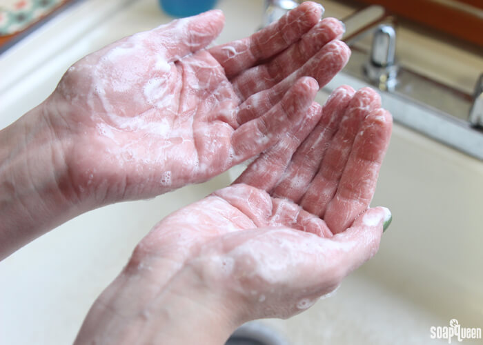 We did a 0% superfat so the lather tests wouldn’t be affected. A higher superfat can mean smaller lather. We wanted to see how the soap performed without it.