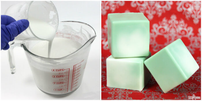If you’re looking for a fun way to incorporate lotion bases into other products, the Lotion Melt and Pour Cubes are easy to make and skin-loving. Aloe Lotion Base is heated and added directly to melted melt and pour soap. The soap is customized further with LabColors and fragrance oil, then swirled together into cubes. Adding lotion base to melt and pour does cut down on the lather, but adds extra moisture.