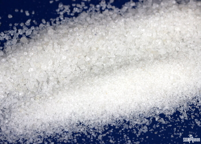 One of the most common types of salt is Epsom salt. Interestingly, Epsom salt is not actually a salt as all! Epsom salt is made of hydrated magnesium sulfate. Magnesium and sulfate are known for their hydrating properties, making Epsom salt a popular choice for bath salts. Epsom salt soaks are commonly used to sooth sore muscles and soothe irritated skin. Epsom salt crystals come in various sizes. Bramble Berry’s Epsom salt is extra fine textured, making it a good options for body scrubs and soaks.