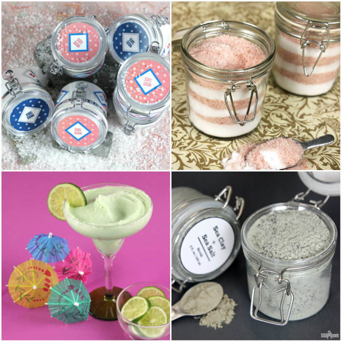 Bottom left to right: Margarita Epsom Salt Scrub, Sea Clay Dry Salt Scrub