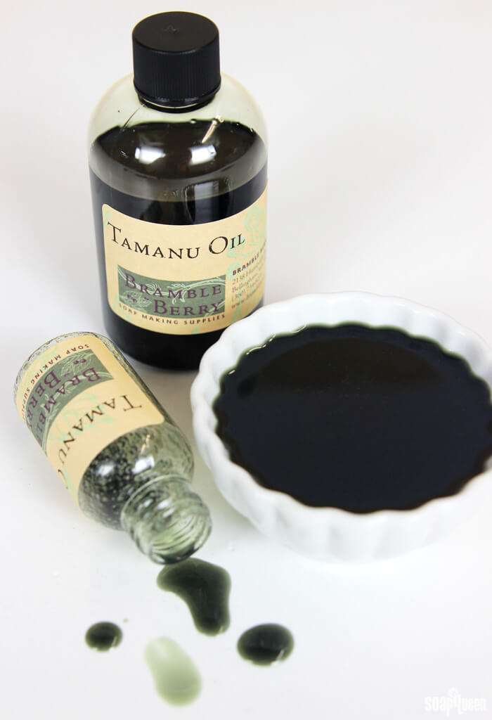 If you’re looking for a cold process recipe with tamanu oil, check out the Man Soap with Tamanu Oil Cold Process recipe. Scented with Leather Fragrance Oil, this soap contains orange peel powder for extremely gentle exfoliation. The tamanu oil is added at trace to give the soap all the skin-loving properties of the oil.