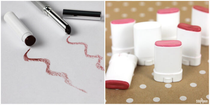 For melt and pour soap, the Titanium Dioxide Color Block mixes into soap easily and smoothly. You can also use the White Liquid Color, which is titanium dioxide evenly dispersed in glycerin. Titanium dioxide is both lip and eye safe, which means you can use it in your lip balm and eye shadow recipes. In the Honey Kisses Lipstick and Soft and Creamy Blush Stick tutorials, a small amount of titanium dioxide gives the products a more opaque quality.