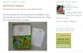 I just wanted to Thank Teresa R in Indianafor the shout out on her blog, Life, Homesteading and Everything. Even though she’s taking a blogging break right now (self-imposed), she took the time to post our SoapQueenTV Schedule. Thanks, Teresa!Read about her schwag bag here.
