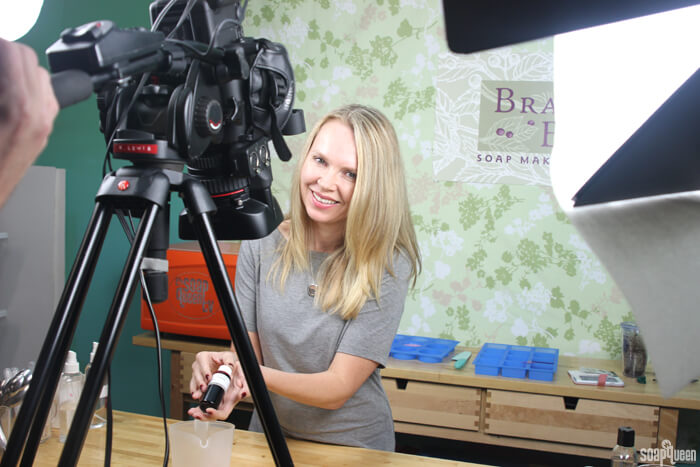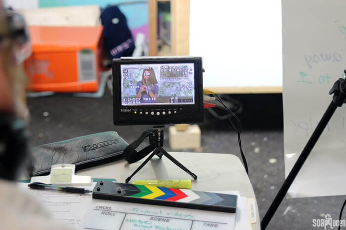 This week, the team and I filmed several videos for Soap Queen TV. A few weeks ago, we also filmed a few informative product videos for the new Bramble Berry YouTube channel (coming soon!). I also did a Live Google Hangout (watch in the comments) for the Handmade Beauty Box crew. It’s been a lot of camera time this week (!). Making videos is hectic, but balanced by lots of laughing, singing and always, a little dancing. Here is a little behind the scenes peak into our most recent shoots.